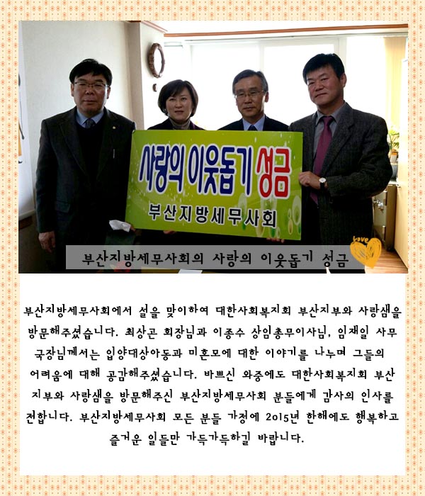 [후원]20150217 부산지방세무사회 후원 최고관리자 0 5761 2015.09.23 16:12 . [이 게시물은 사랑샘관리자님에 의해 2021-12-22 14:52:03 공지사항에서 이동 됨]