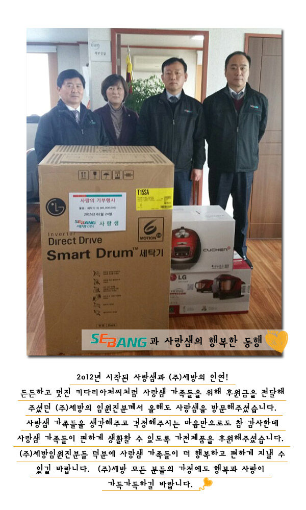 [후원]20150224 (주)세방 후원품 전달 최고관리자 0 4821 2015.09.23 16:18 . [이 게시물은 사랑샘관리자님에 의해 2021-12-22 14:53:13 공지사항에서 이동 됨]